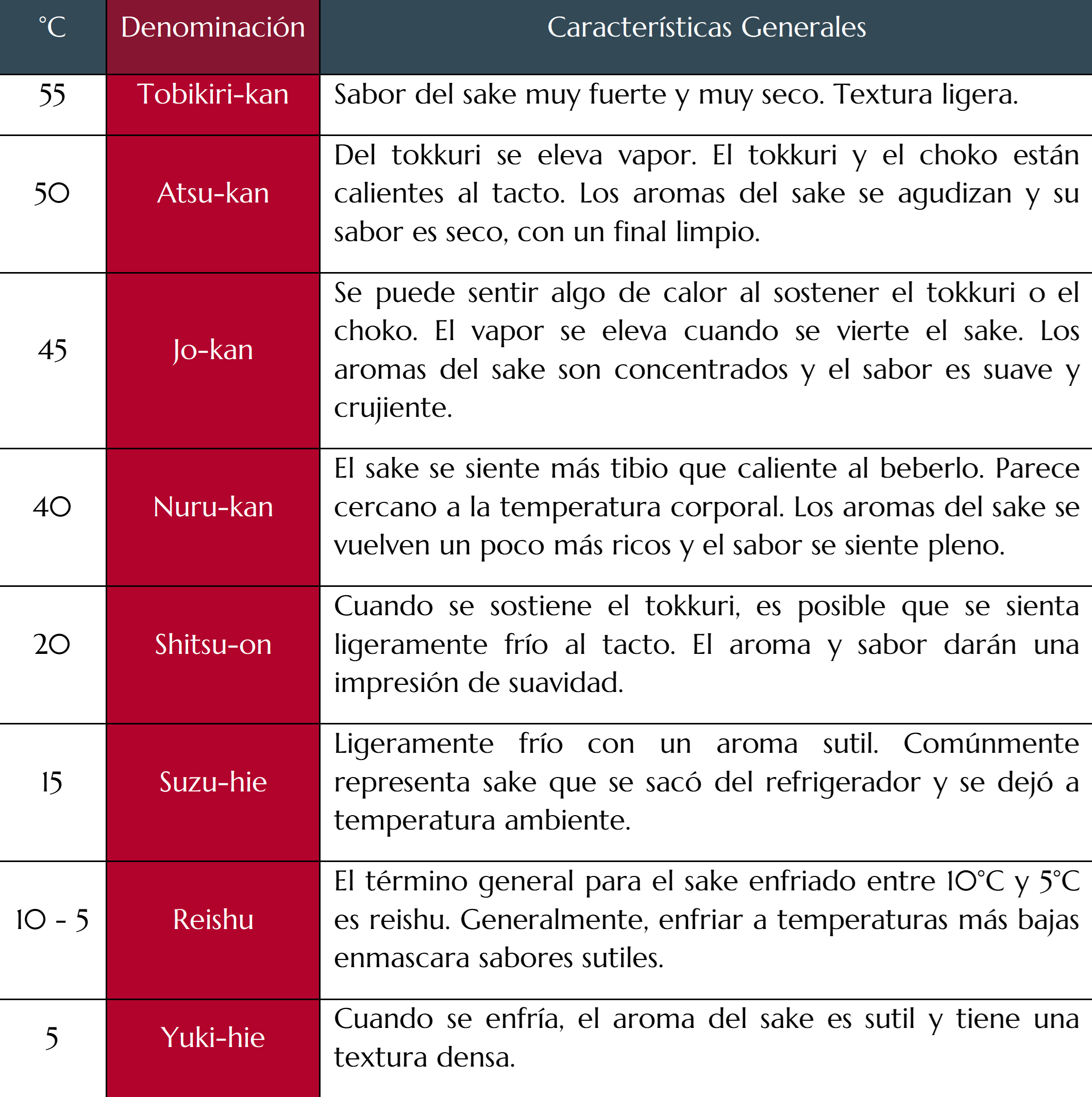 Temperatura de Diferentes Tipos de Sake